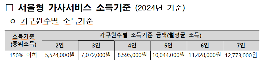 가구원별 소득기준(2024년 기준)