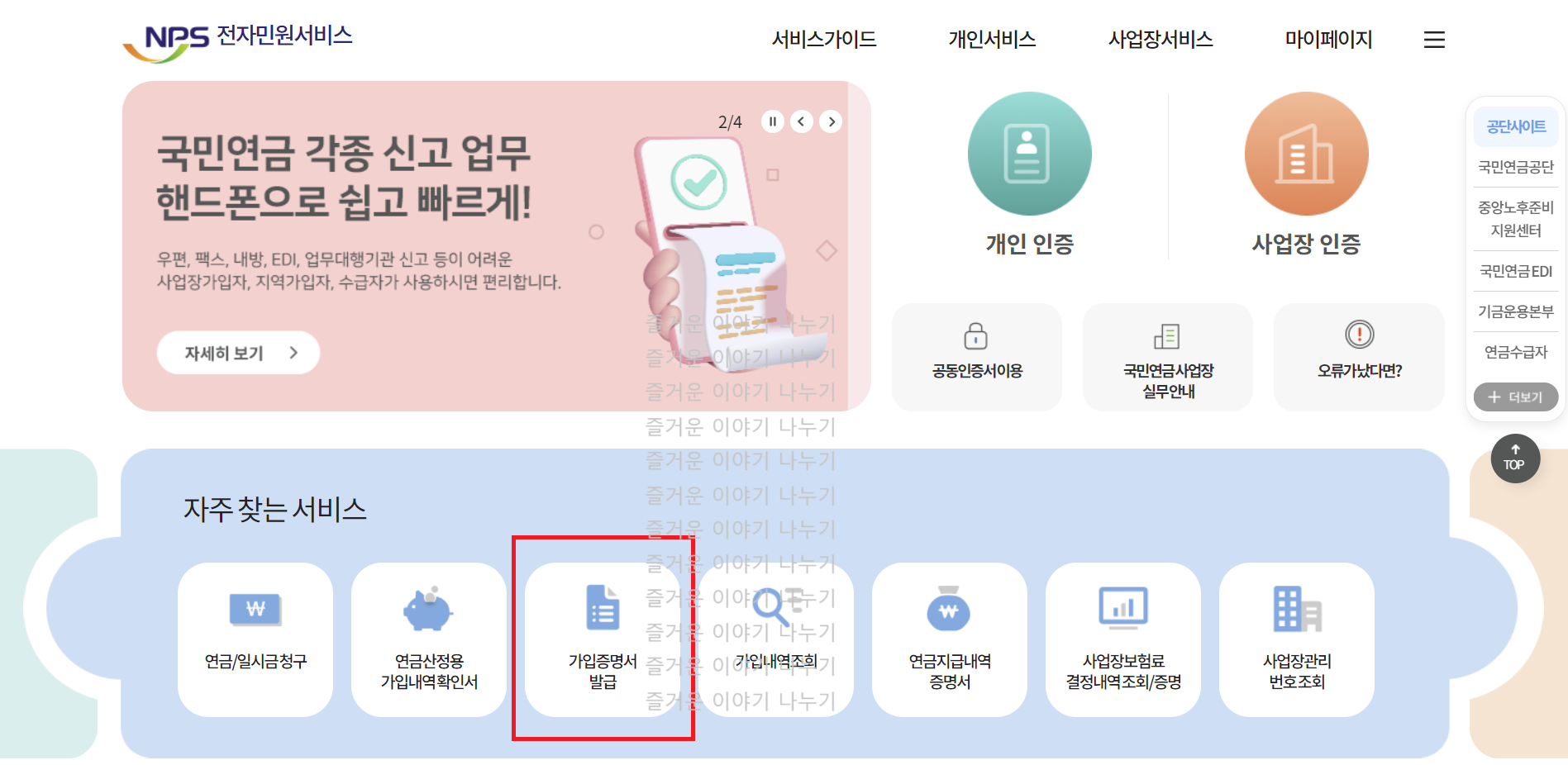 국민연금 가입증명서 인터넷발급 팩스 전자증명 모바일
