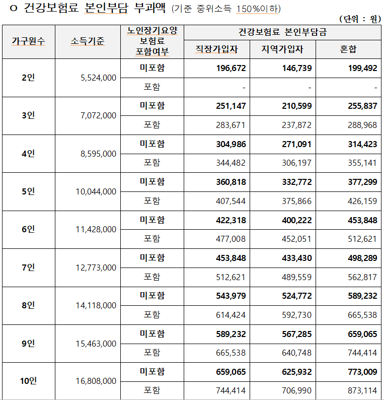 가구원별 소득기준(2024년 기준)